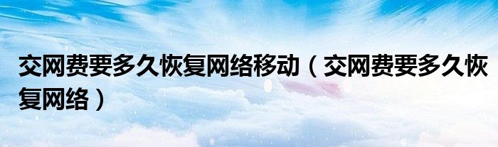 大家好,小晋来为大家解答以下问题,关于交网费要多久恢复网络移动,交网费要多久恢复网络很多人还不知道,今天让我们一起来看看吧!