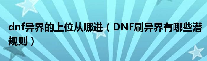 关于dnf异界的上位从哪进,DNF刷异界有哪些潜规则这个很多人还不知道,今天菲菲来为大家解答以上的问题,现在让我们一起来看看吧!